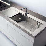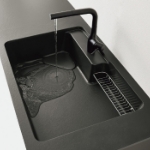 最上級グレードのシステムキッチンで、特にセラミックトップの美しさと耐久性、そしてミニマルデザインによる洗練された外観が魅力です。収納力や機能性も充実しており、使いやすさとデザイン性を兼ね備えたキッチンです。